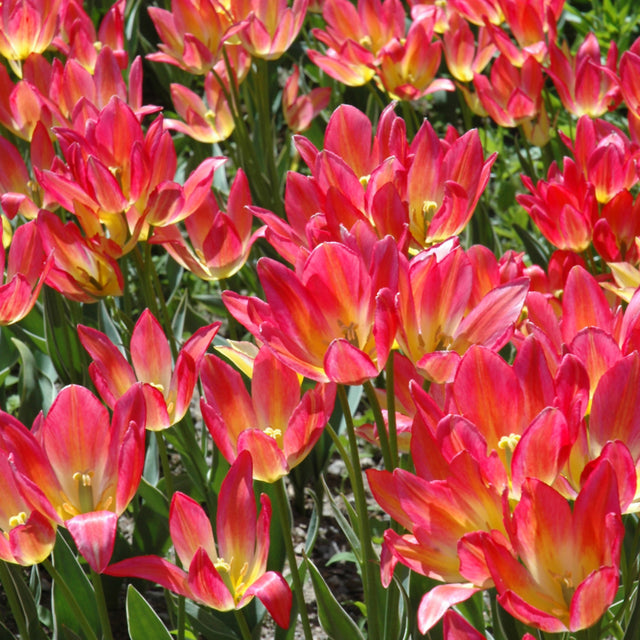 Also known as the Chameleon Tulip, this variety starts out yellow, then pink edges appear and matures to a lovely salmon orange; an exquisite bouquet on each stem, and looks stunning when massed together in the garden