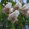 A beautiful long-season bloomer featuring cones of mixed sterile and fertile white flowers in mid to late summer which transform to a rich pink; an improved version of 'Pinky Winky' hydrangea with larger, fuller flower heads and deeper hot pink color