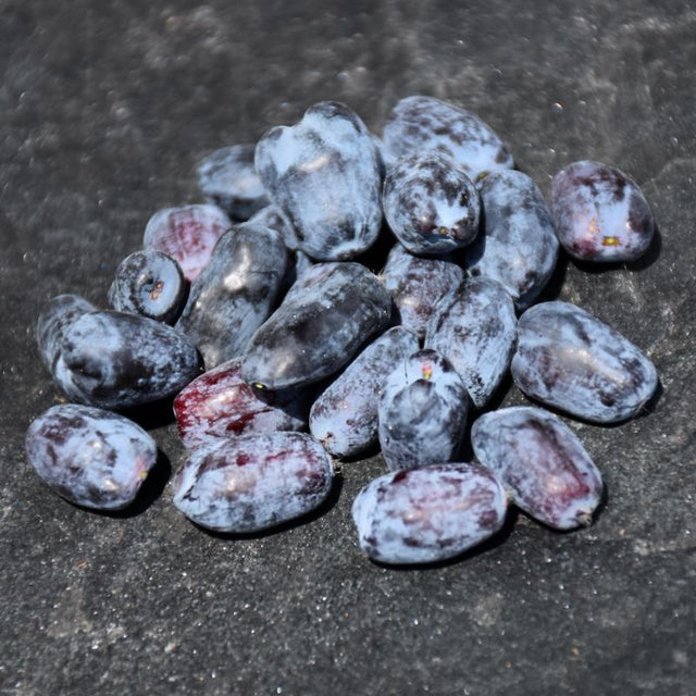 Description: One of the earliest producing varieties, the Tundra is a early-season variety that ripens late June, through July. The berries are long and sweet, and improve their flavour profile (and abundance) if planted with early pollinators such as the Polar jewel, Aurora, and berry blue varieties.